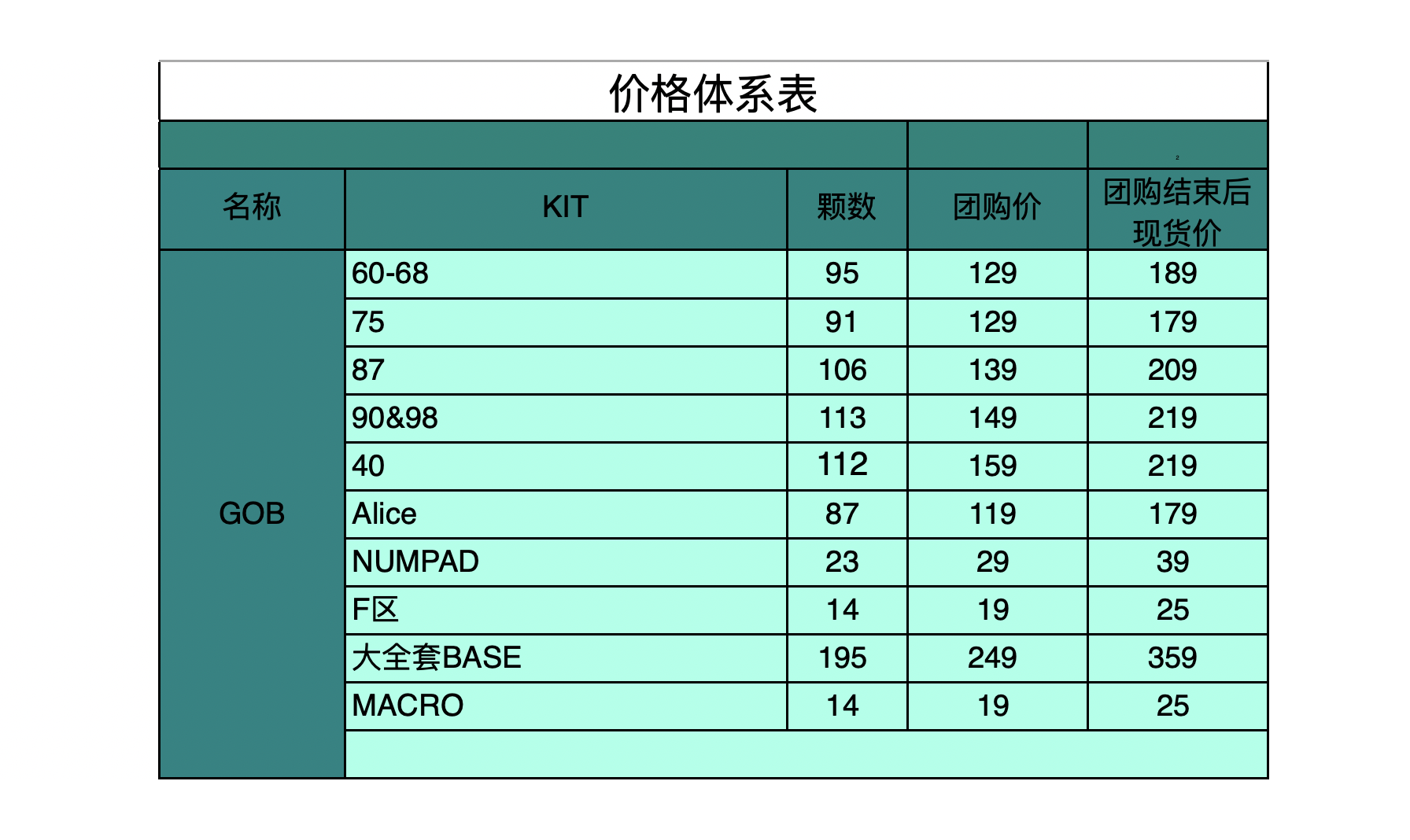 NUMPAD、MACRO和F区这三个KIT是为100%键盘特设的小KIT,不能单买。